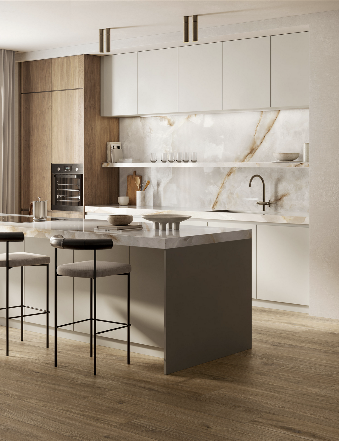 Les dalles en grès cérame d’une épaisseur de 12 mm, non rectifiées sont particulièrement indiquées pour la création de plans de travail, d'îlot de cuisines, de meubles de salles de bains, mais également de mobilier sur-mesure comme des tables.