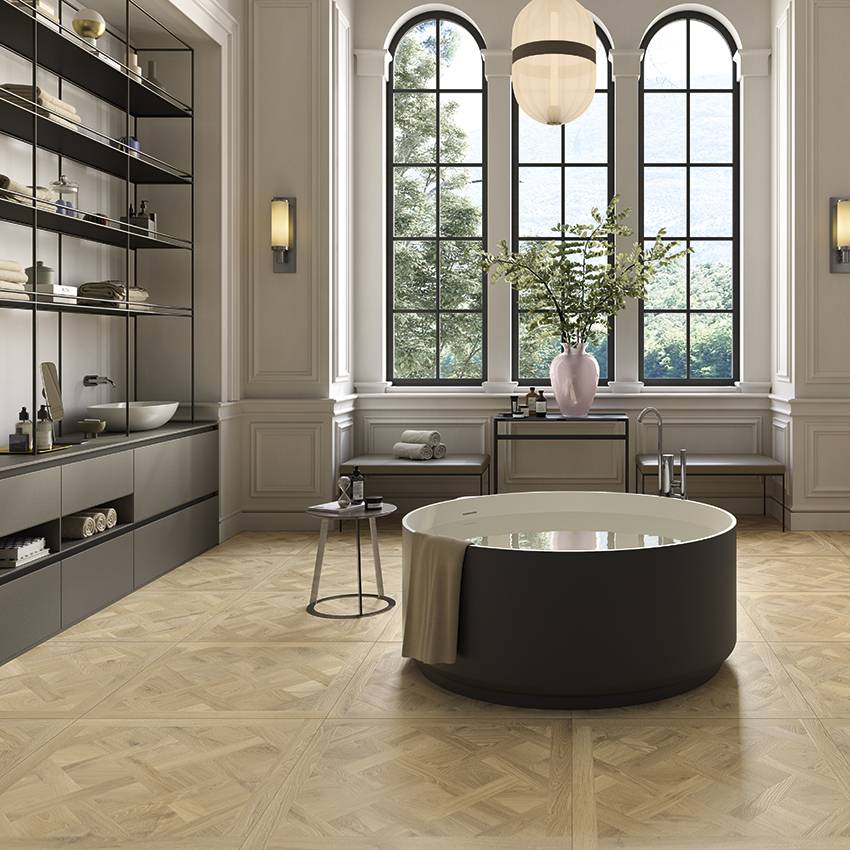 Pour pallier à cela, et ne pas le regretter à la première tâche, nous vous proposons une sélection de parquet Versailles... en céramique!