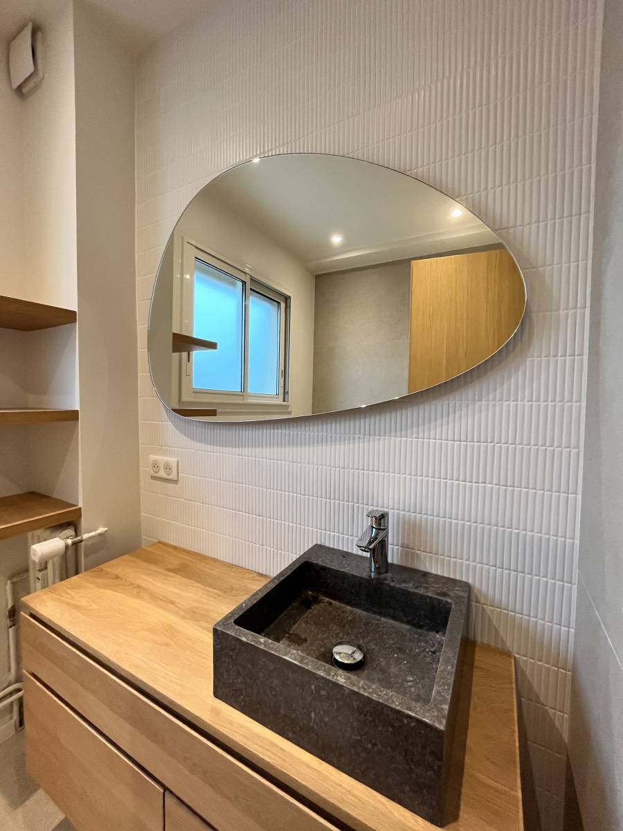 Pour la rénovation de cet appartement complet à Nice dans les Alpes-Maritimes, l'agence de design intérieur a choisi un revêtement aussi tendance qu'original, la mosaïque Kit-Kat. Ces fins bâtonnets de céramique montés sur trame assurent un joli rythme à vos murs et une déco ultra tendance....